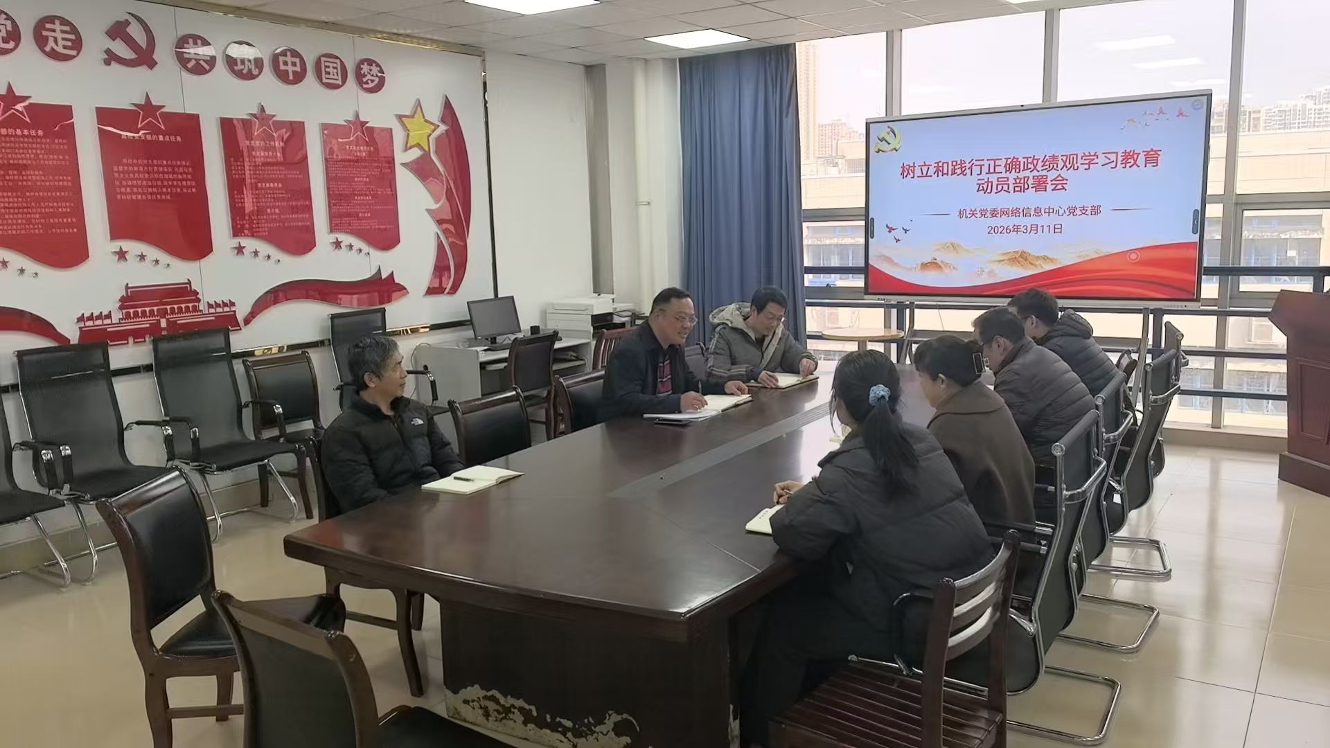 2026年3月11日,网络信息中心党支部召开树立和践行正确政绩观学习教育动员部署会。网络信息中心全体党员、科级以上干部、入党积极分子参会,党支部书记张连强主持会议。